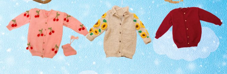 Hand-knit Cherry Baby Sweater